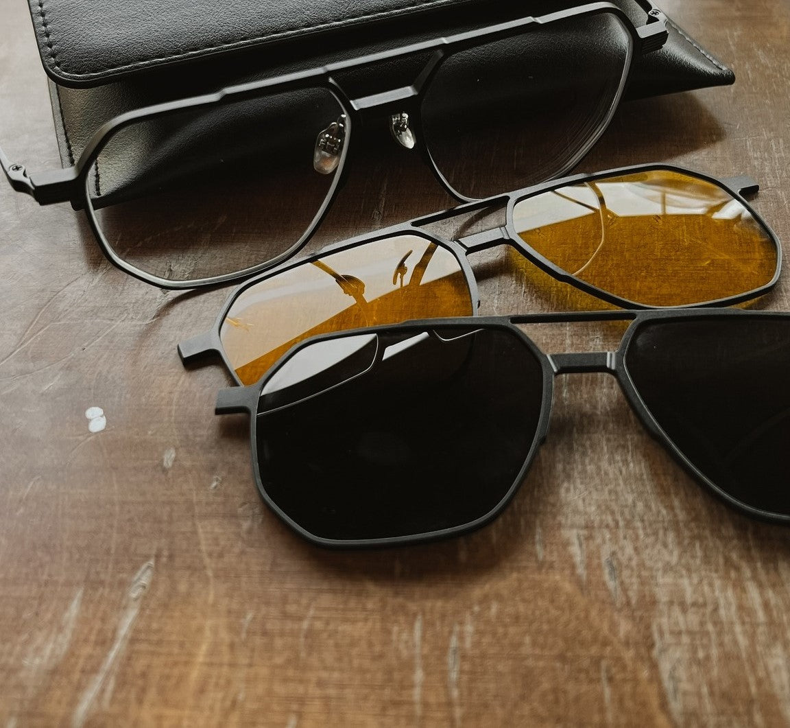Sistema Magnético Avanzado: Los 5 clips magnéticos intercambiables se colocan de manera segura sobre tus lentes de graduación, gracias a unos potentes imanes que mantienen el clip en su lugar sin caerse, ¡y sin esfuerzo!